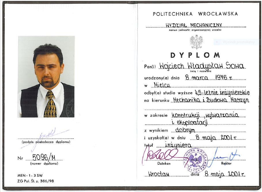DYPLOM UKOŃCZENIA POLITECHNIKI WROCŁAWSKIEJ